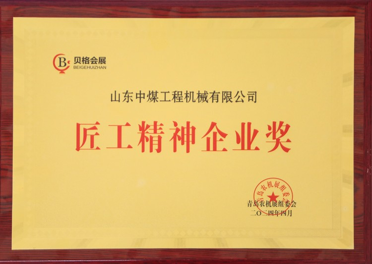 Recently, Shandong China Coal Construction Machinery Co., Ltd, a subsidiary of China Coal Group, was awarded the honorary title of "Craftsmanship Enterprise Award" by the organizing committee of Qingdao Agricultural Machinery Exhibition for its excellent product quality and service quality at the recently concluded 2024 China (Qingdao) Agricultural Machinery and Accessories Expo.